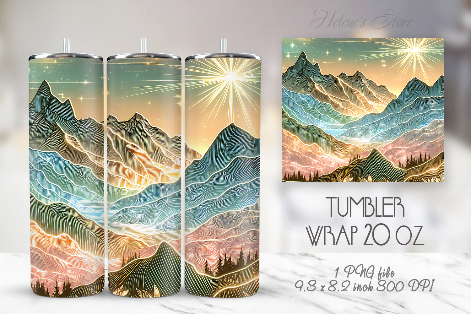 Mountains sublimation design for wrap straight skinny tumbler 20 oz