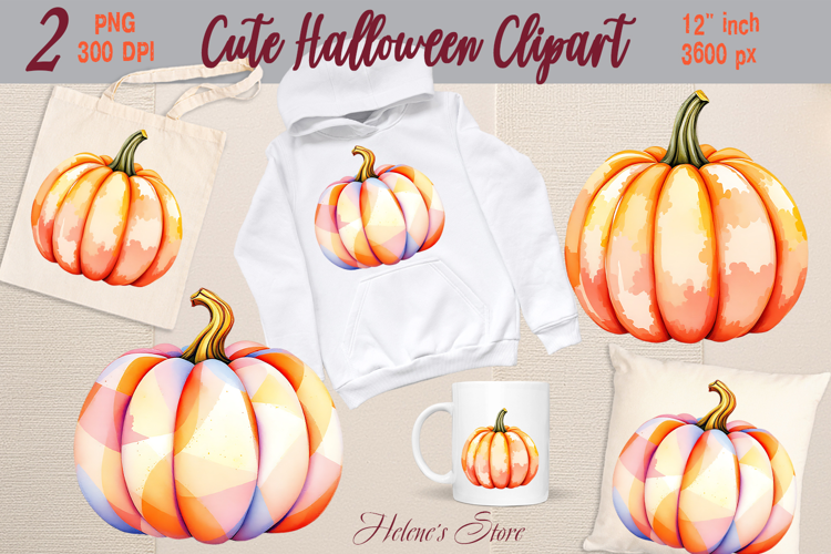 Cute Halloween pumpkin clipart |Watercolor shirt designs png example image 1