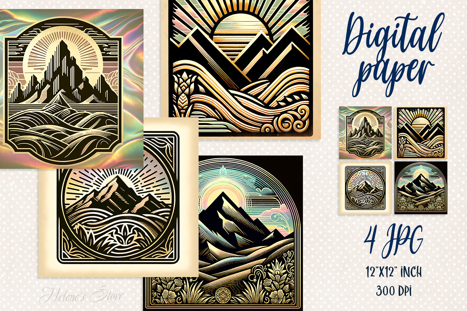 Similar Design Products to Mountains digital paper| Retro engraving style scrap booking