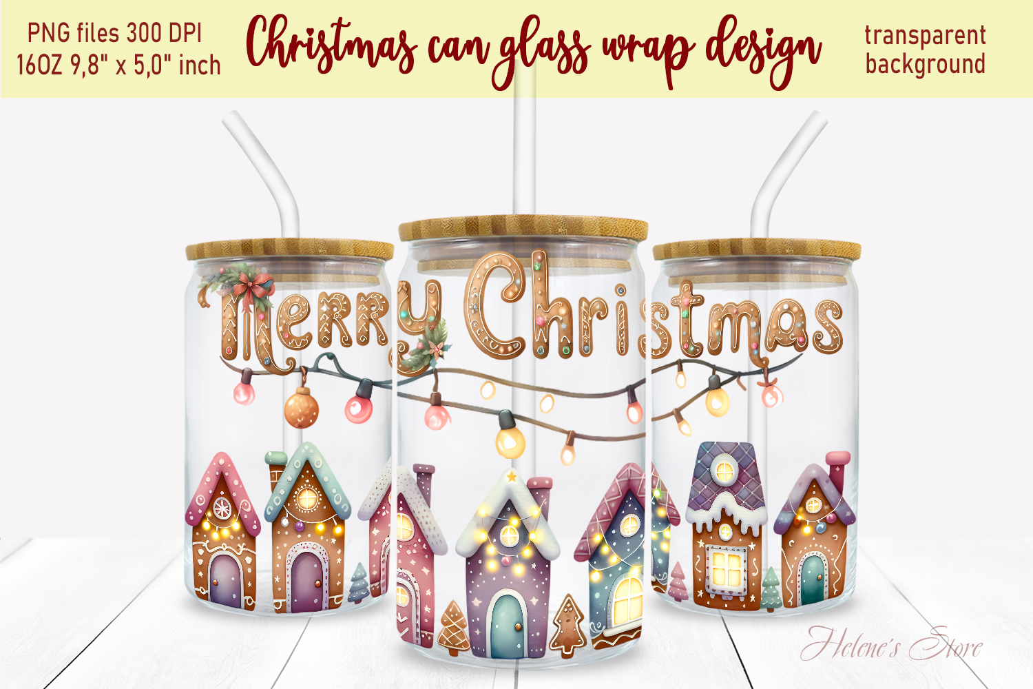 Christmas gingerbread house can glass wrap 16oz sublimation