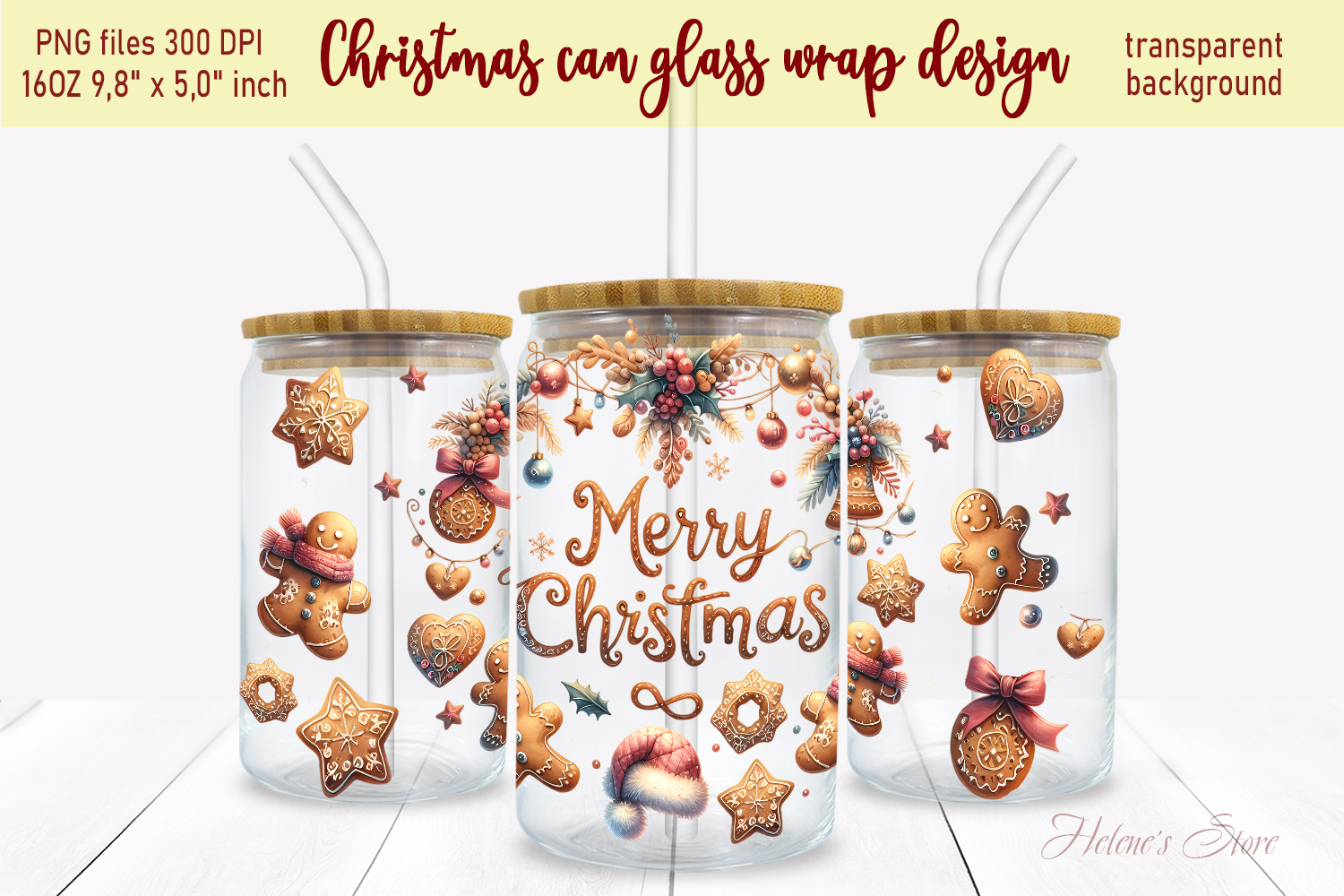 Marry Christmas gingerbread man can glass wrap 16oz png example image 1