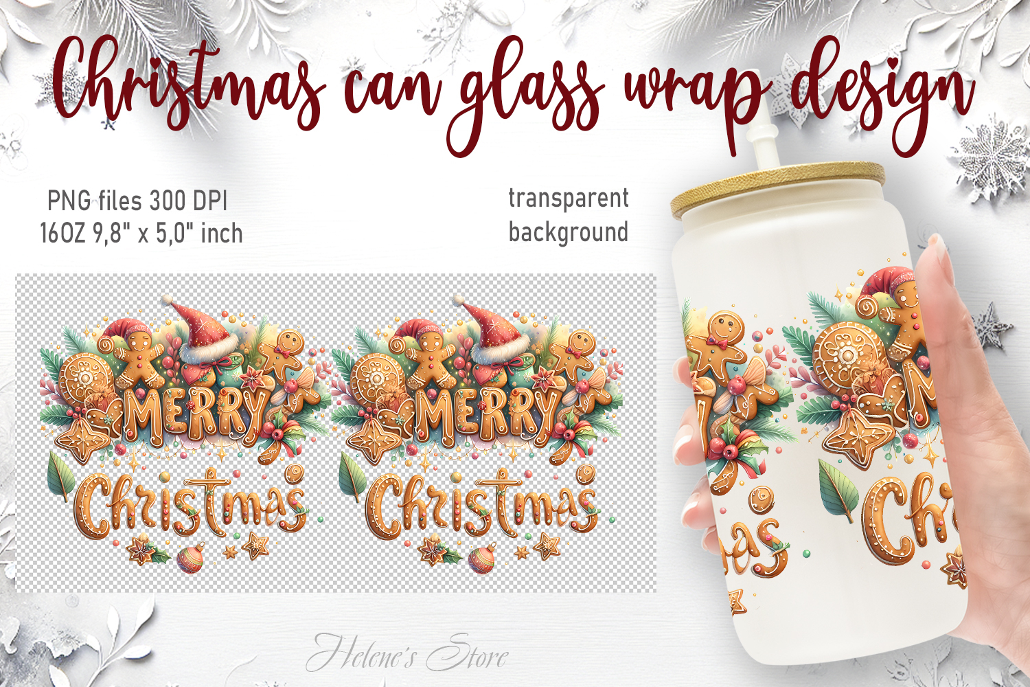 Marry Christmas gingerbread can glass wrap 16oz png example image 1