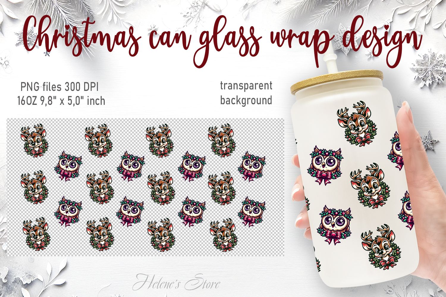 Christmas animals pattern design can glass wrap 16oz example image 1