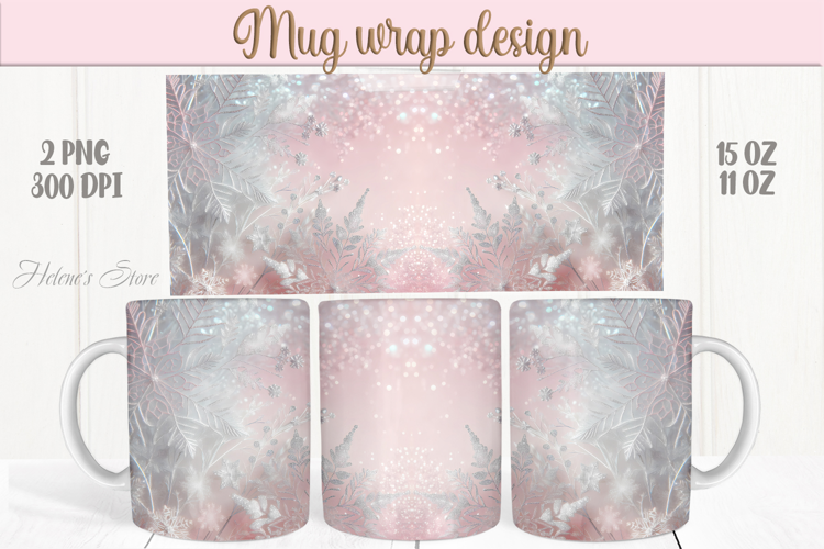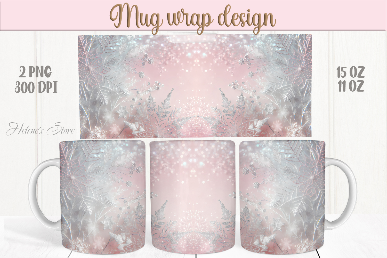 Pink Silver Christmas mug wrap png|Snowflake mug sublimation example image 1