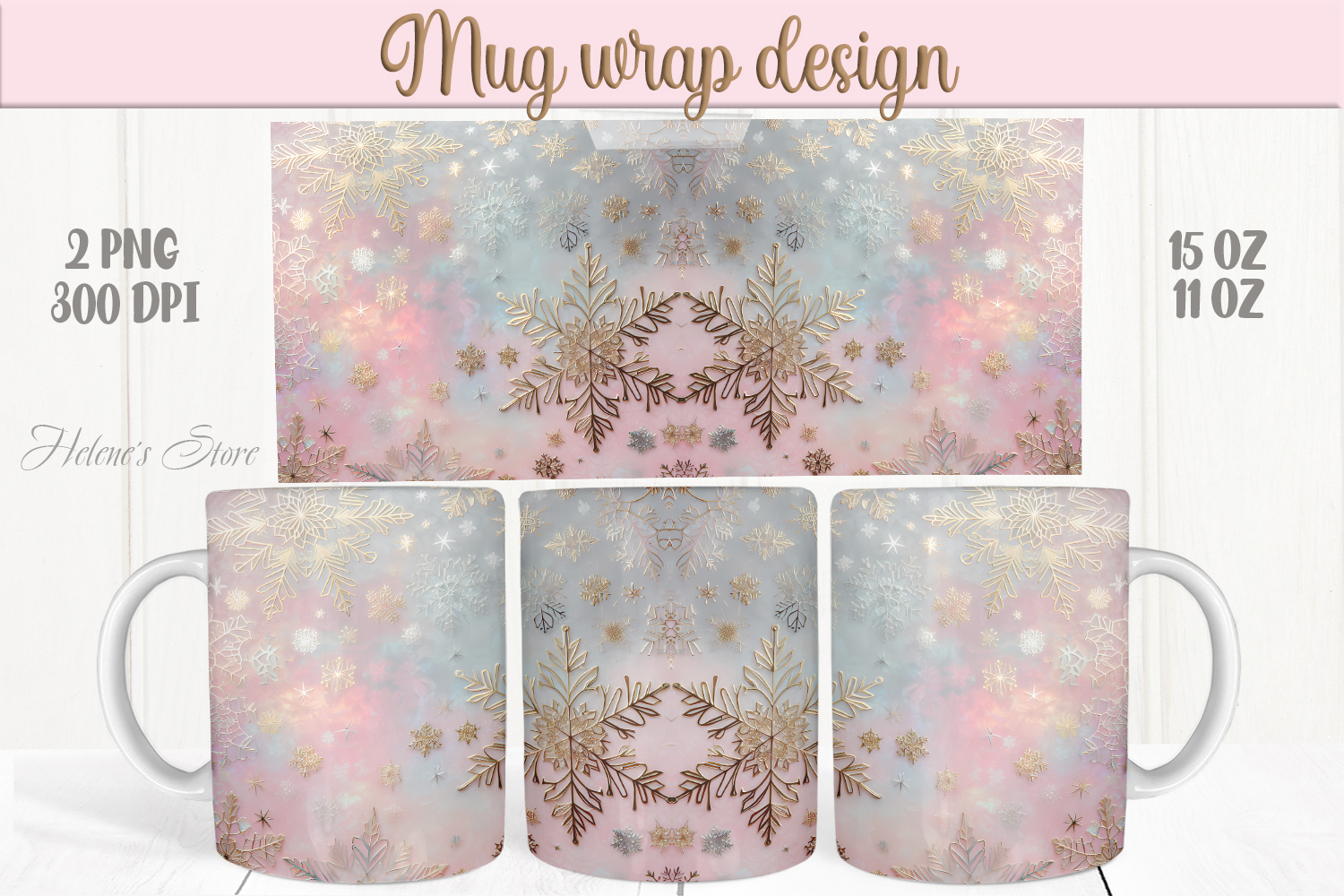 Pastel Christmas mug wrap png |Snowflakes mug sublimation example image 1