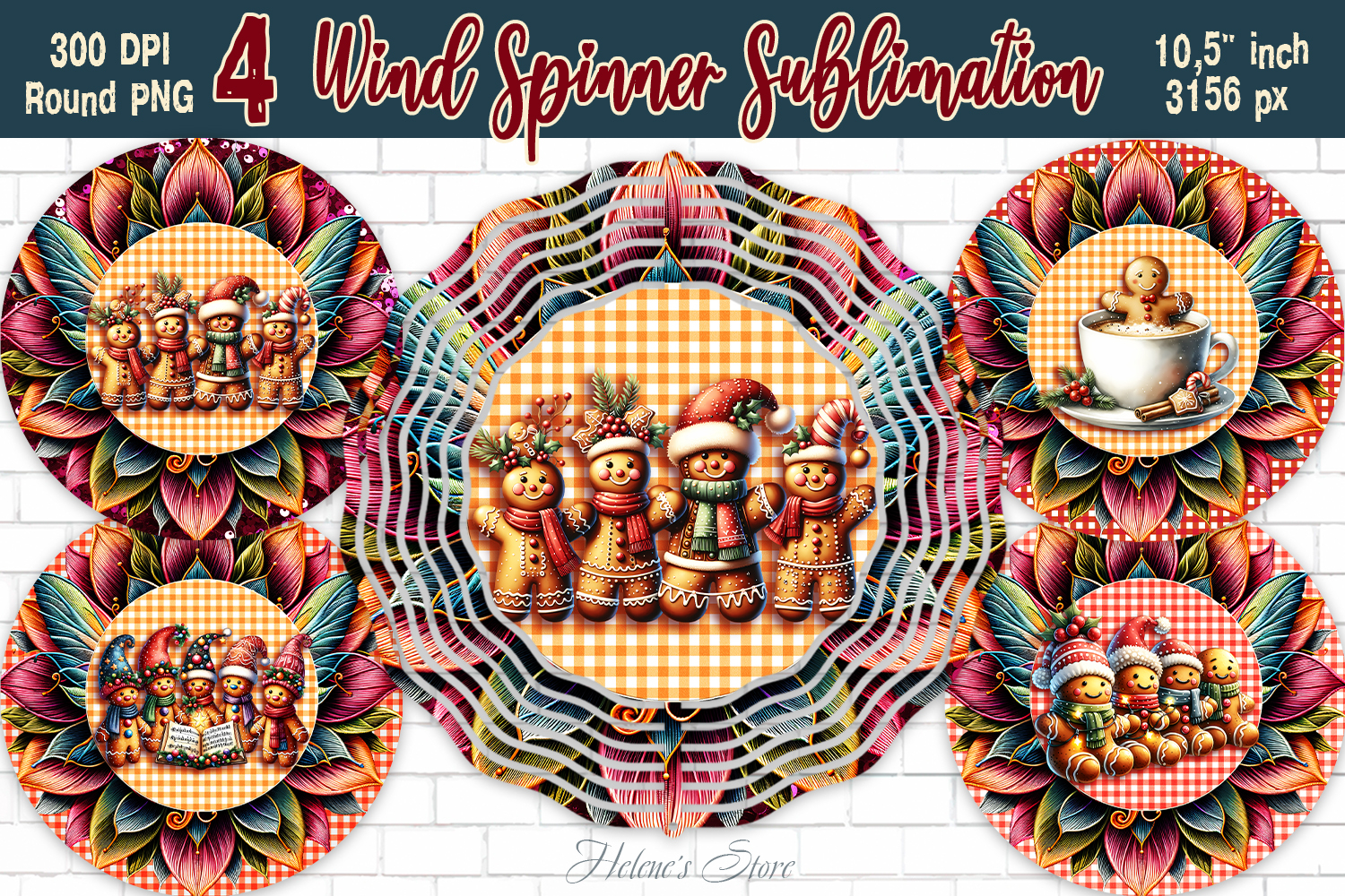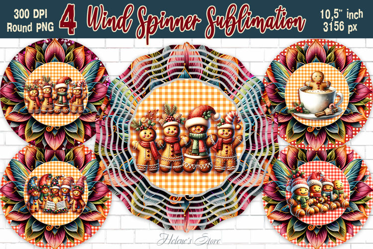 Christmas gingerbread Wind Spinner wrap sublimation designs