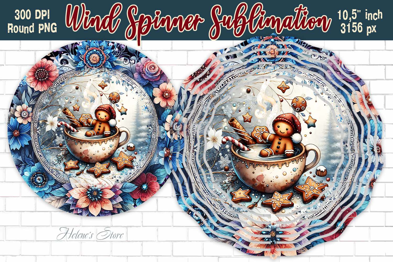 Christmas gingerbread Wind Spinner wrap sublimation designs