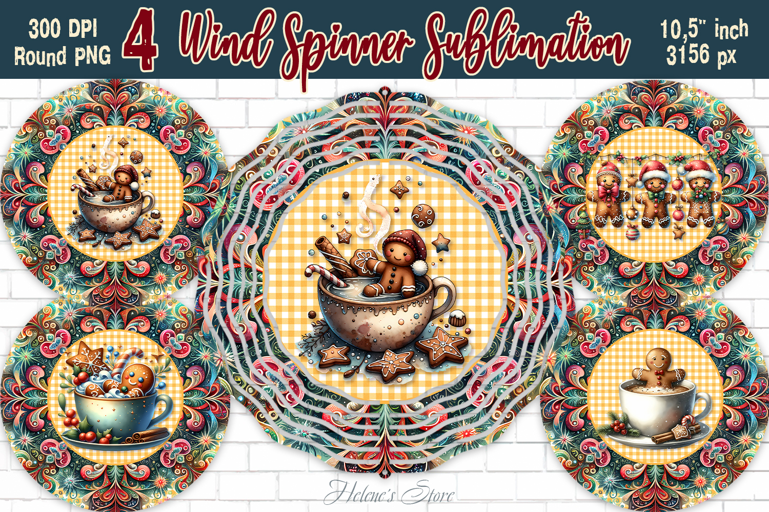 Christmas gingerbread Wind Spinner wrap sublimation designs