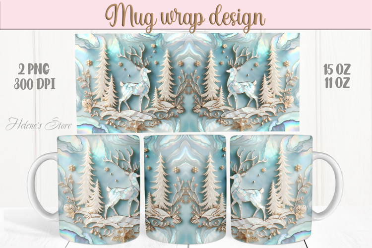 Pastel Christmas deer mug wrap png |Blue and gold mug design example image 1