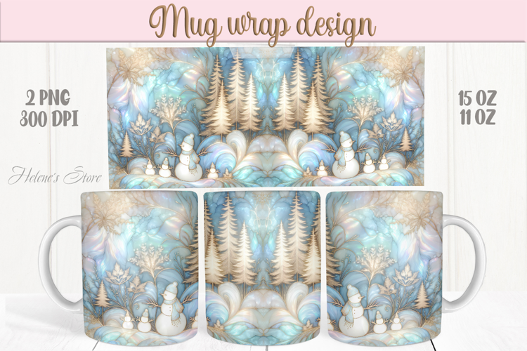 Similar Design Products to Pastel Magical Christmas mug wrap png |Blue & gold mug desig
