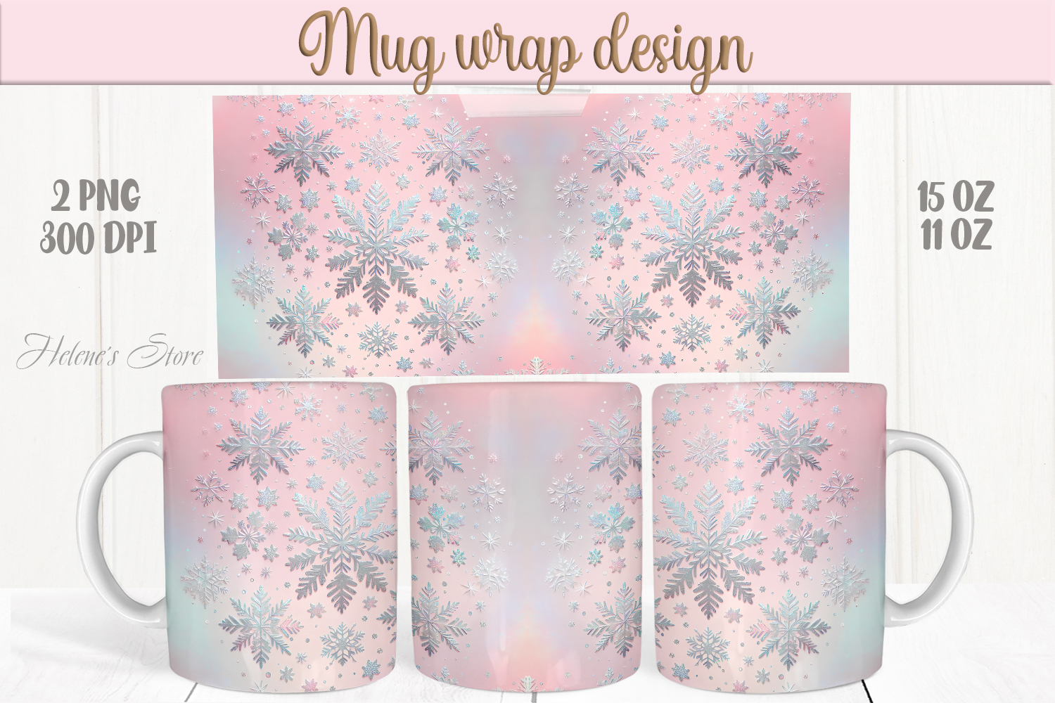 Christmas snowflakes mug wrap png |Pink & silver mug design example image 1