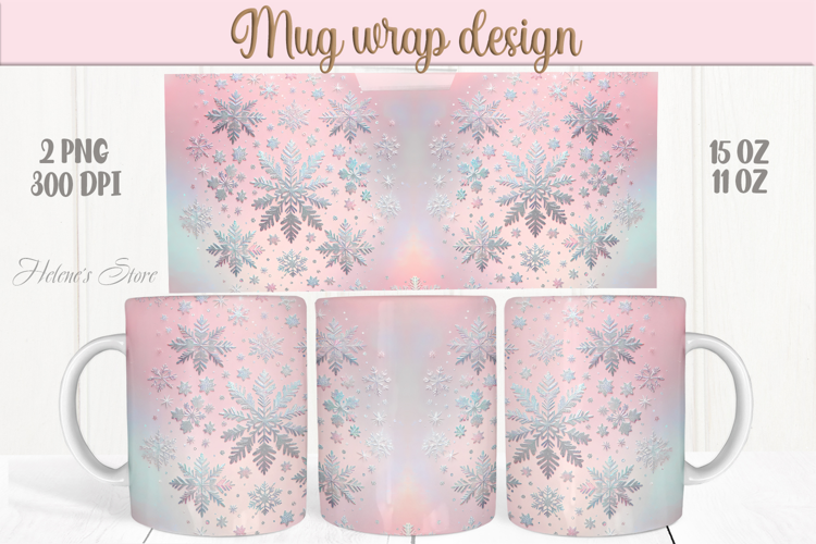 Christmas snowflakes mug wrap png |Pink & silver mug design
