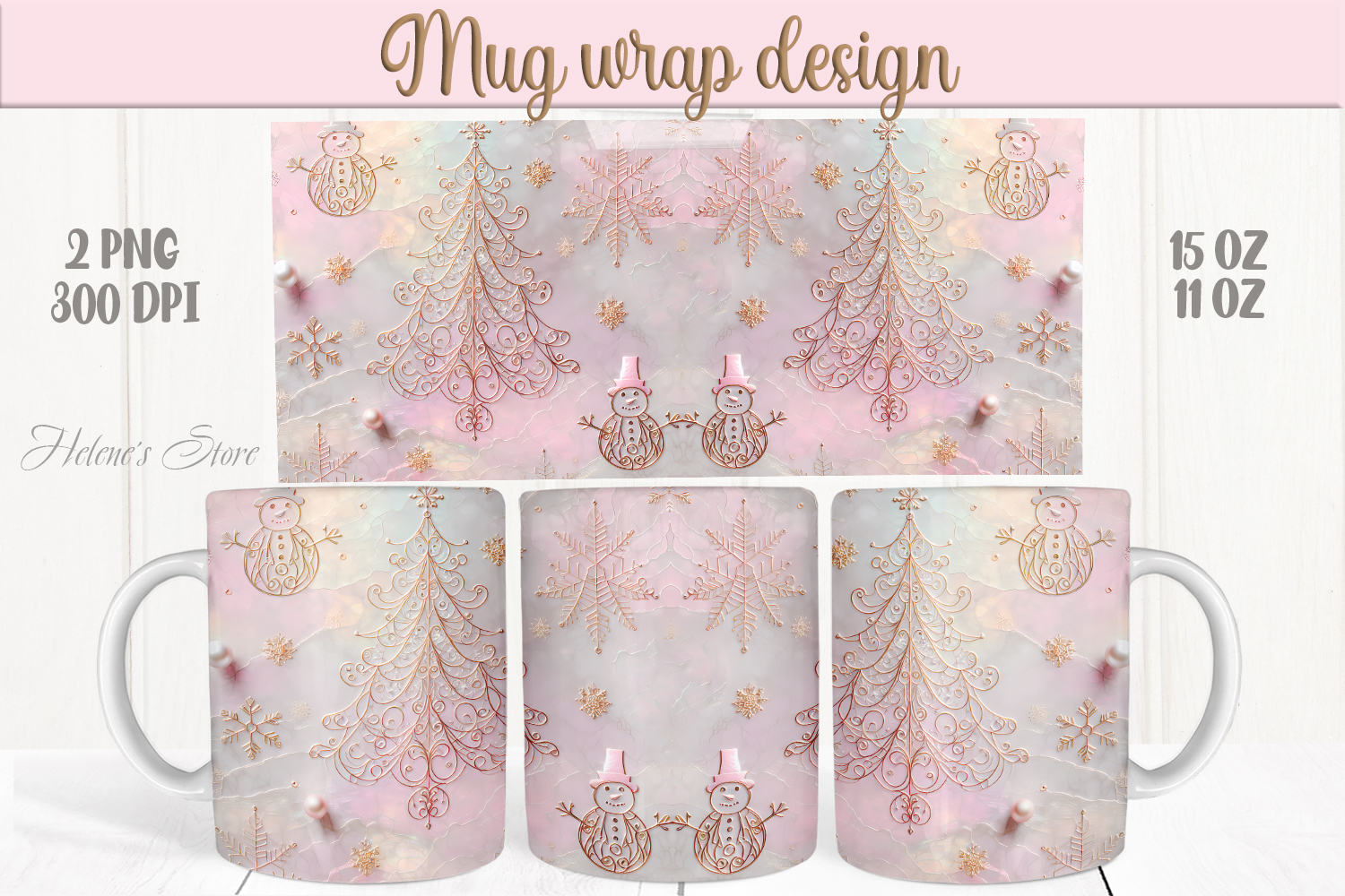 Christmas tree & snowmen mug wrap png|Pink & gold mug design example image 1