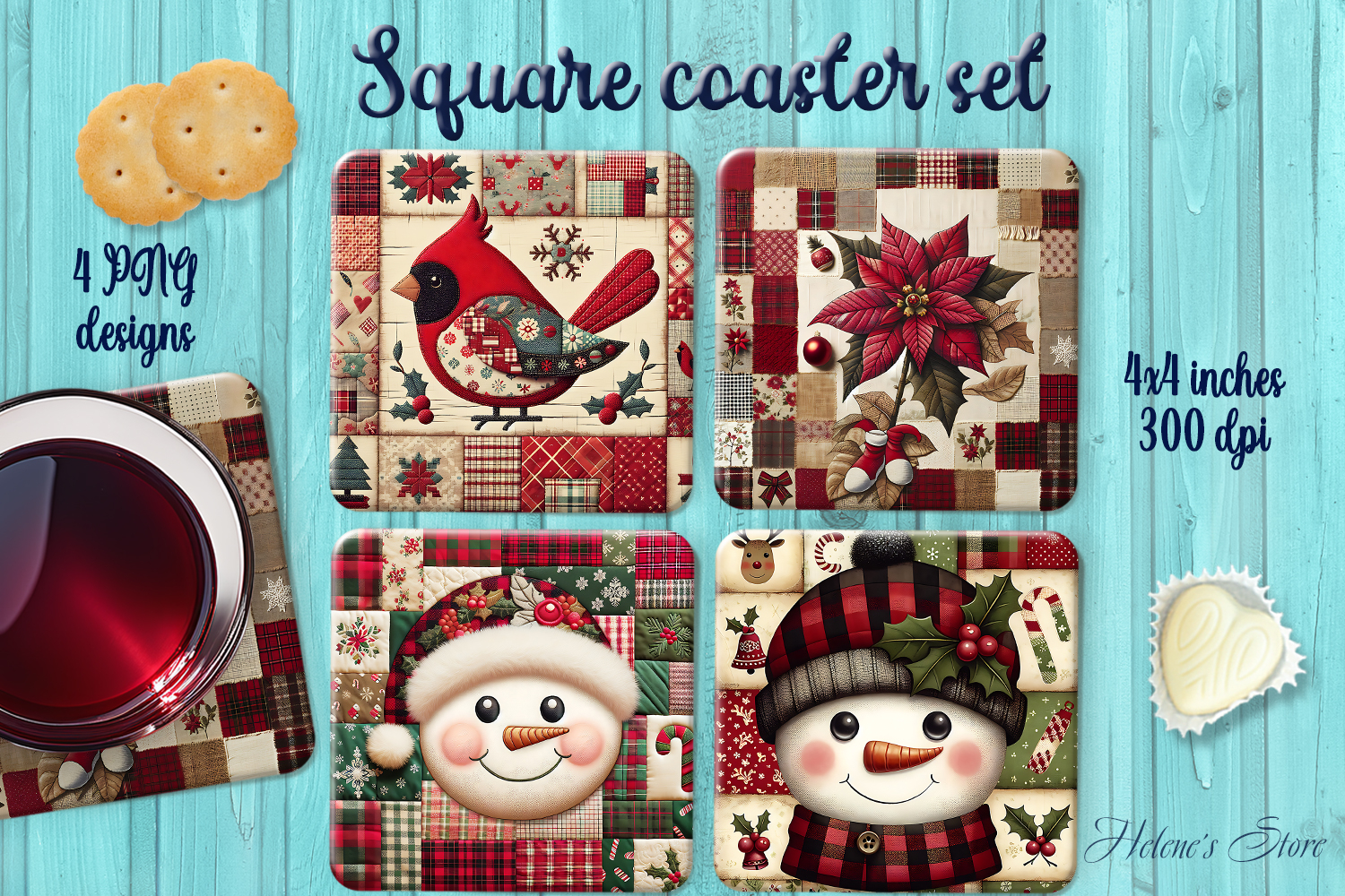 4 abstract square coaster template key chain, square coaster wrap designs for mug, square keychain design sublimation set, magical watercolor illustrations graphics image, pastel patchwork kids delicate design, cute funny winter season, playful snowmen illustration, folk patchwork xmas design, farmhouse rustic country graphics image. preppy rustic quilted christmas designs, cute reindeer deer funny snowman cardinal bird