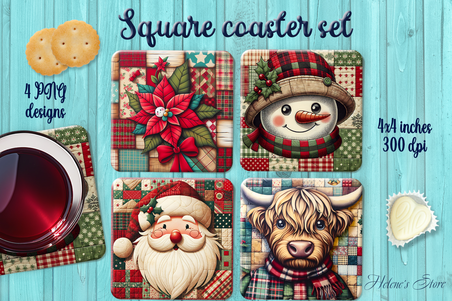 Christmas Rustic Patchwork square coasters wrap sublimation