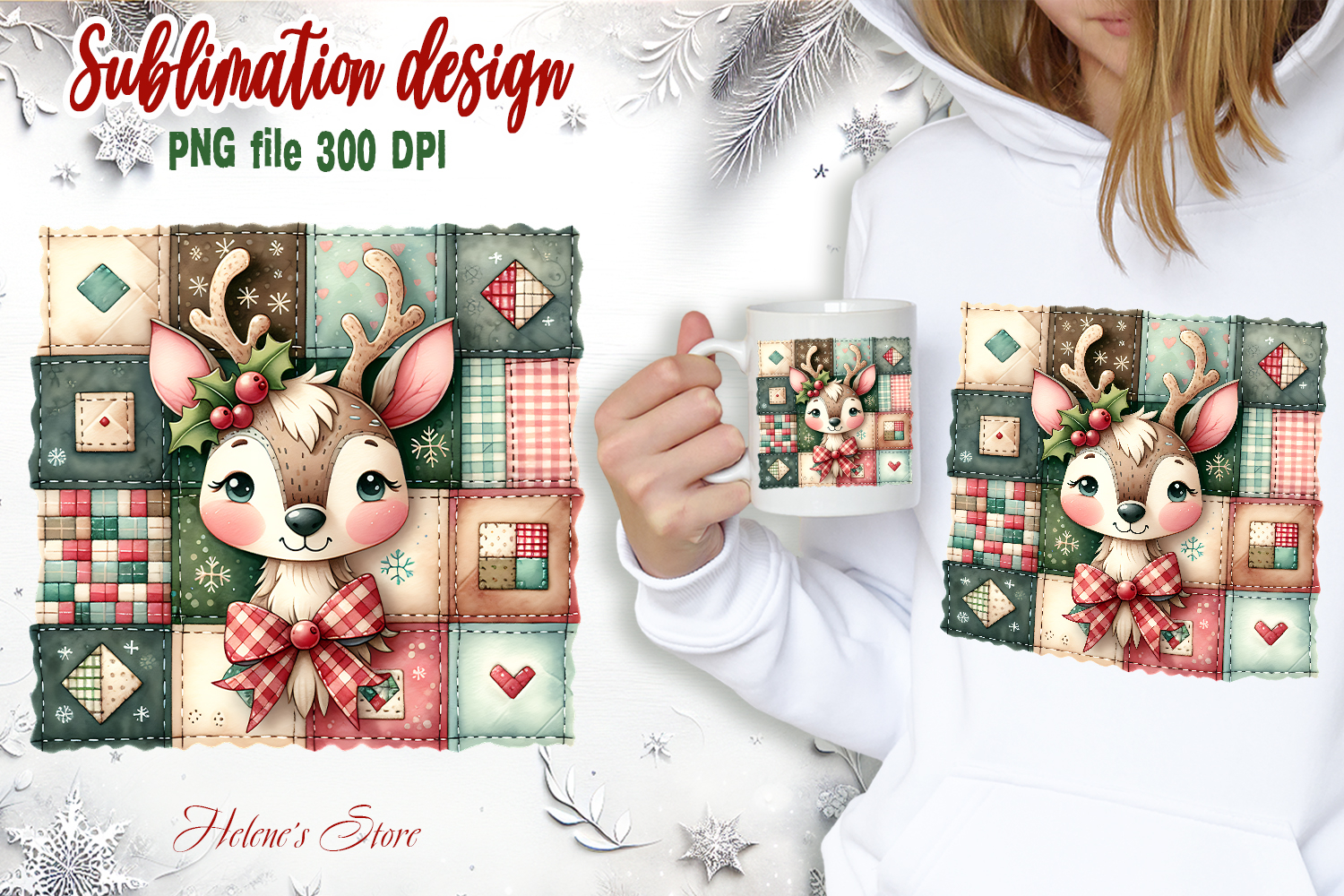 Cute Christmas deer clipart Retro patchwork shirt designs example image 1
