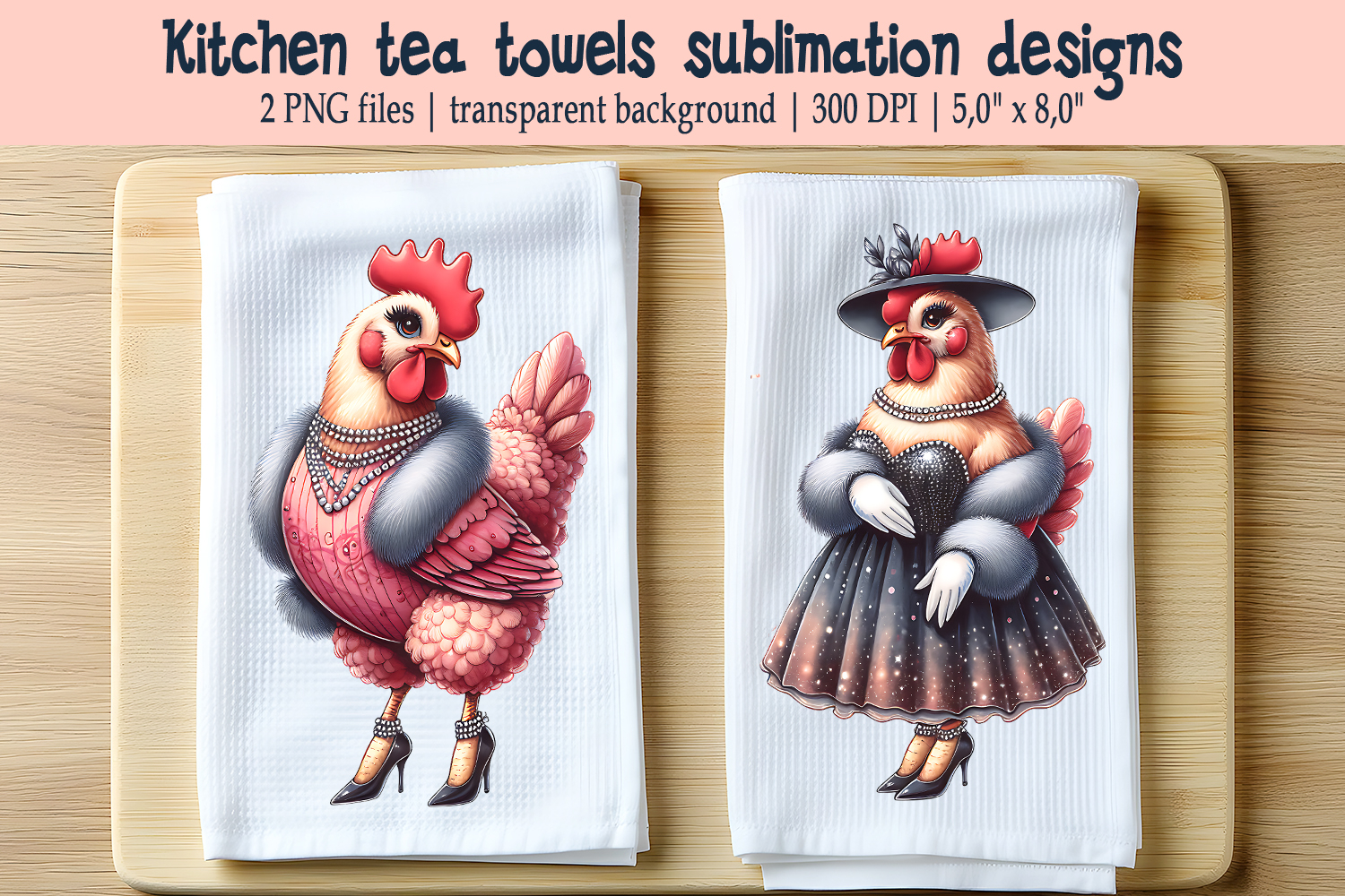 Fashion Chicken kitchen tea towel sublimation designs example image 1