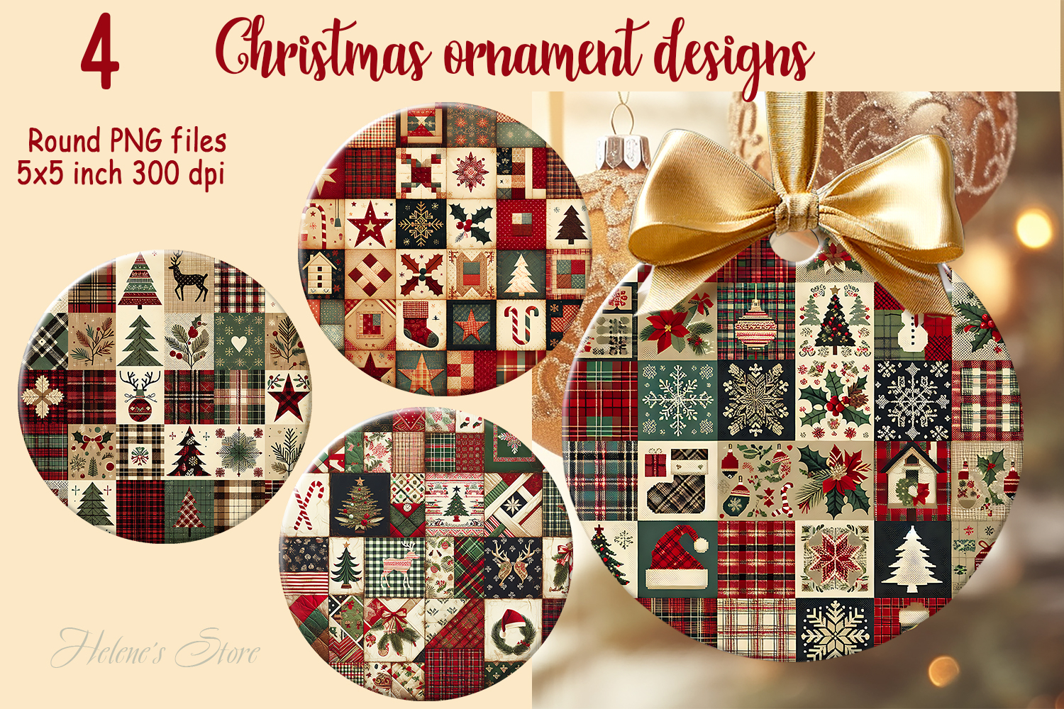 Christmas patchwork round ornament sublimation designs PNG example image 1