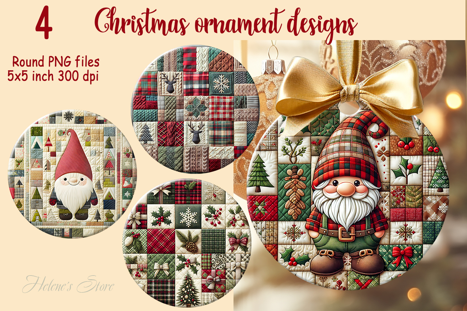 Christmas patchwork round ornament sublimation designs PNG example image 1