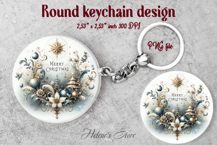 Christmas round keychain design |Christmas star Car coaster example image 1