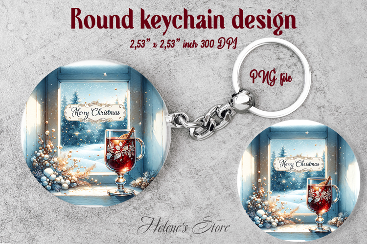 Christmas round keychain design |Christmas drink Car coaster example image 1