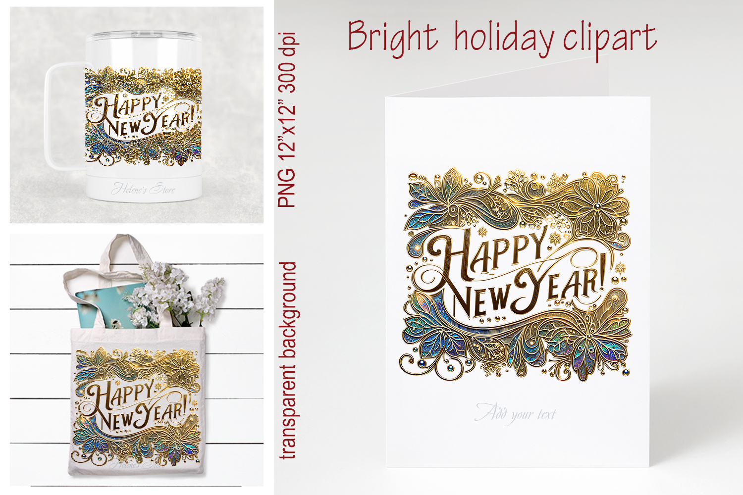 Bright Happy New Year quote sublimation design clipart png example image 1