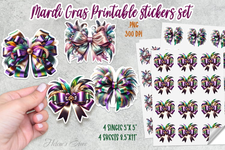 Similar Design Products to Mardi Gras coquette bow printables stickers and sheet