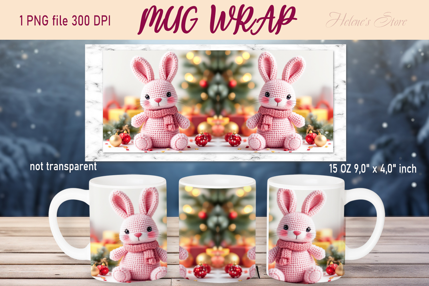 Pink Crochet Yarn bunny Christmas mug wrap 15 oz png design example image 1
