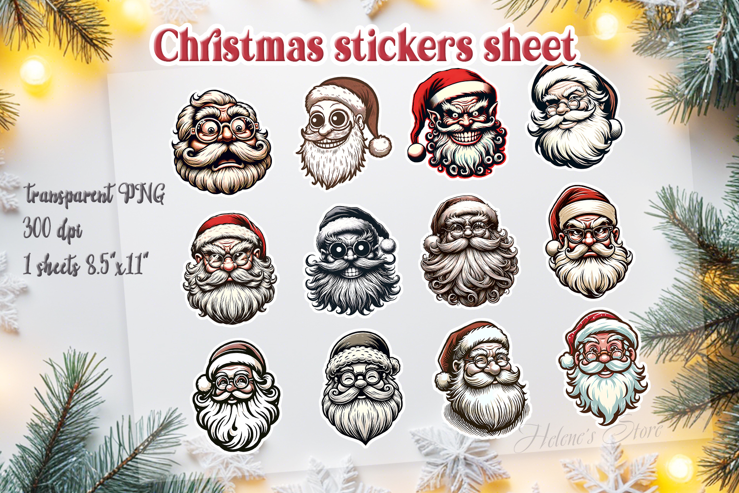 Merry Christmas Design Png Sticker Sheet Print And Cut Retro Sticker Pack Vintage Stickers Set Gift Tag Printable Stickers Scrapbooking Card Christmas Planner Stickers Bundle Xmas Printable Sticker Sheet For Kids Laptop Journal Sticker Labels Designs Png Xmas Printable Sticker Sheet Sublimation Cute Child Clipart Santa Claus Hat Stickers Funny Santaemotions Evil Kind Angry Surprised