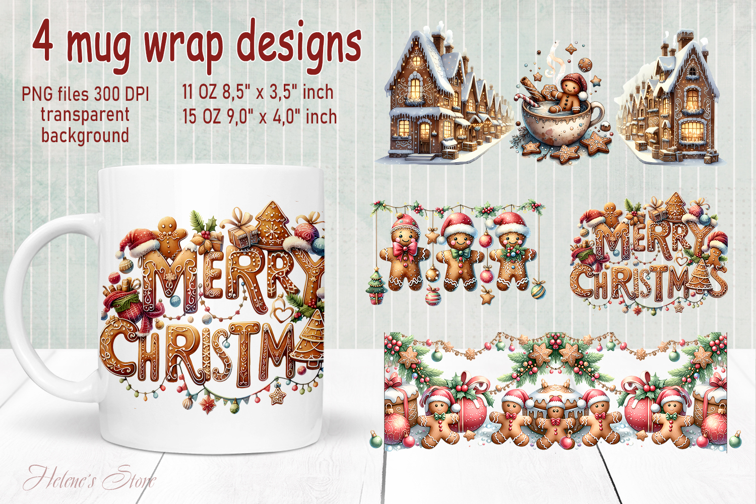 Gingerbread mug wrap. Christmas Design sublimation mug wrap 11oz and 15oz