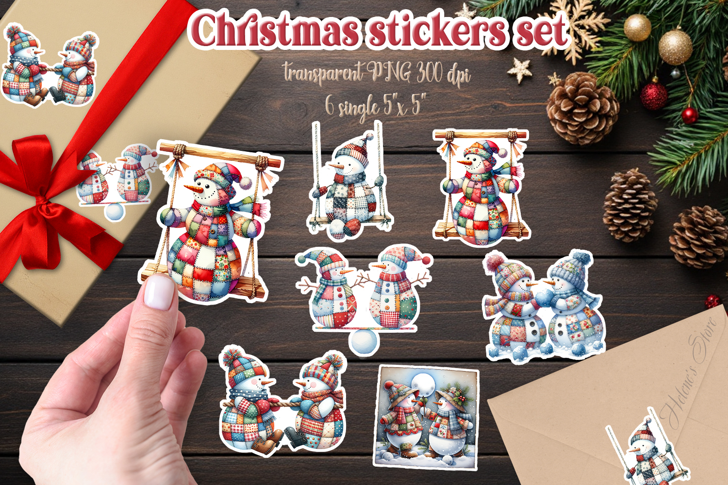 Christmas patchwork printables stickers | Cute snowman png example image 1