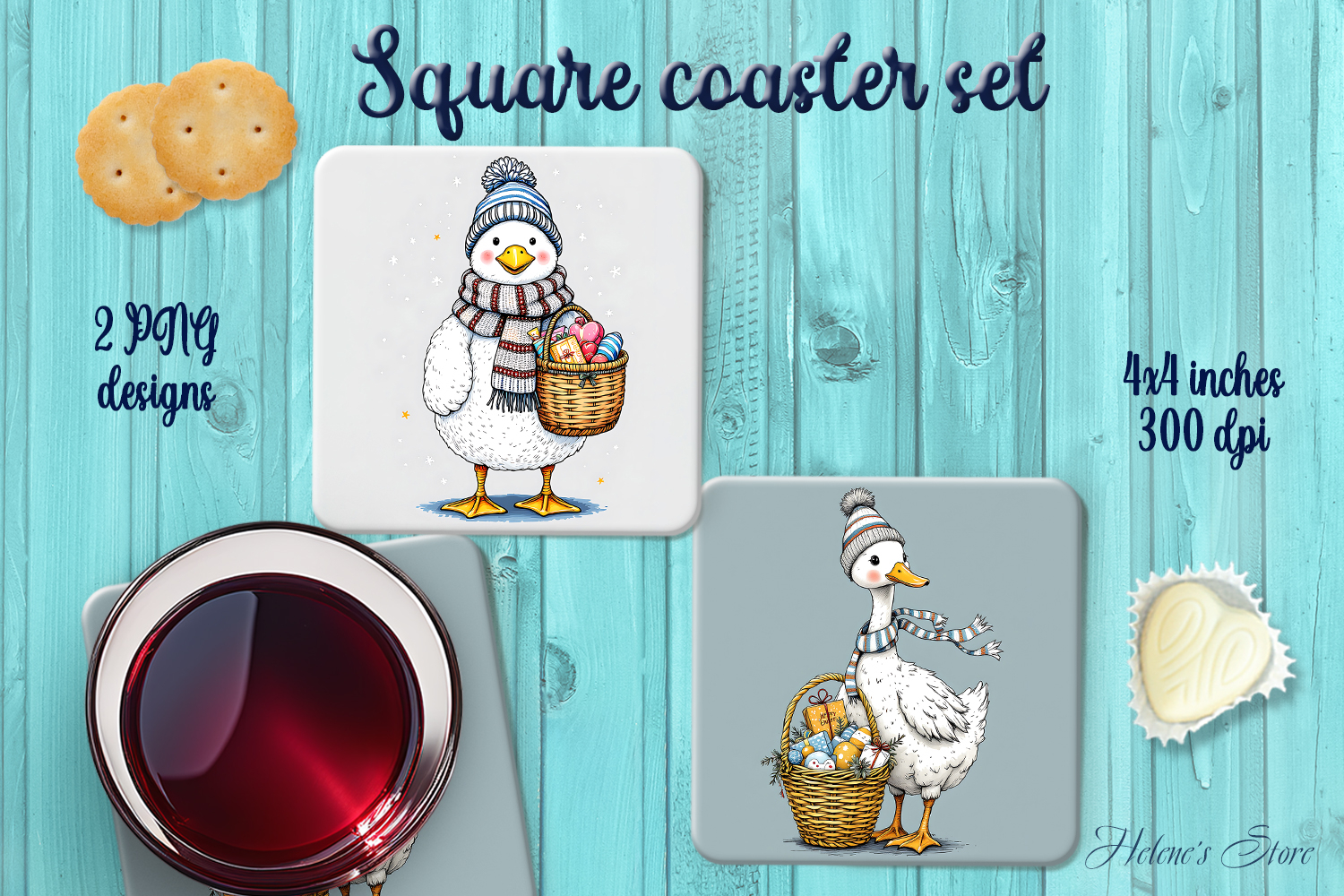 Funny Christmas goose square coasters wrap sublimation png example image 1