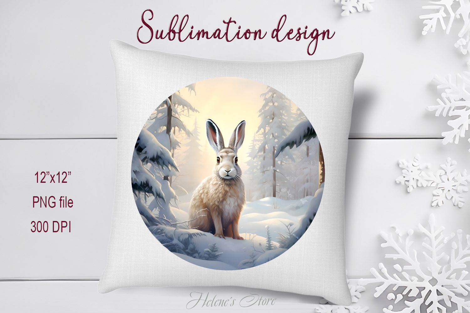 Cute Christmas bunny round cute sublimation design png example image 1