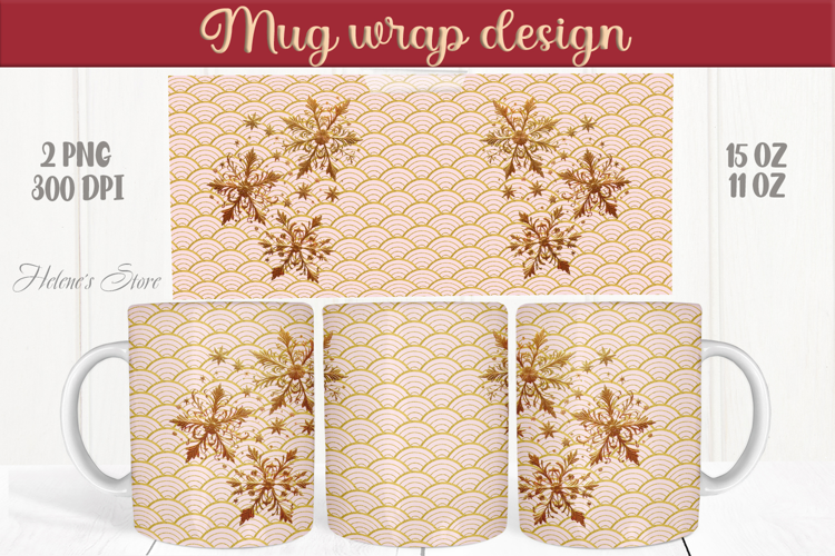 Christmas snowflakes mug wraps png|Golden sublimation design example image 1