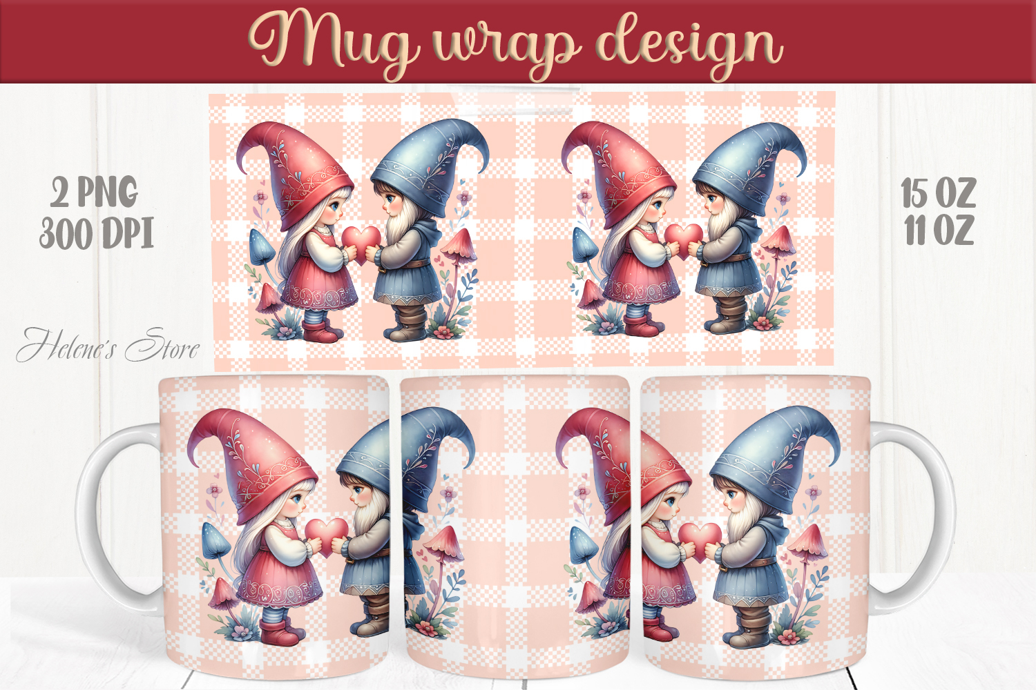 Cute gnomes with heart Mug wrap sublimation | Valentines day example image 1