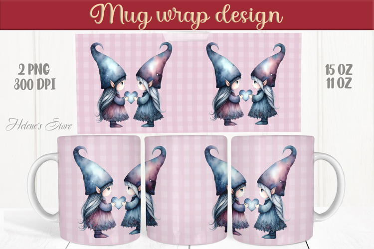 Cute gnomes with heart Mug wrap sublimation | Valentines day example image 1
