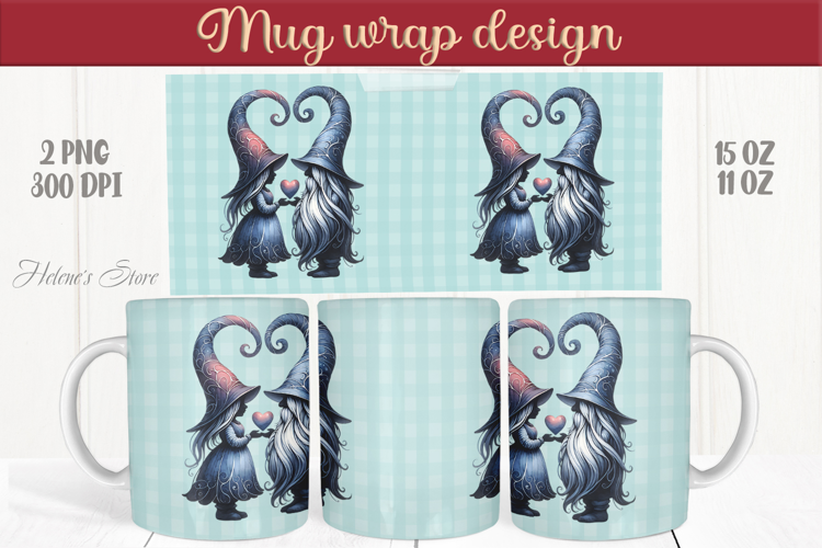 Cute gnomes with heart Mug wrap sublimation | Valentines day example image 1