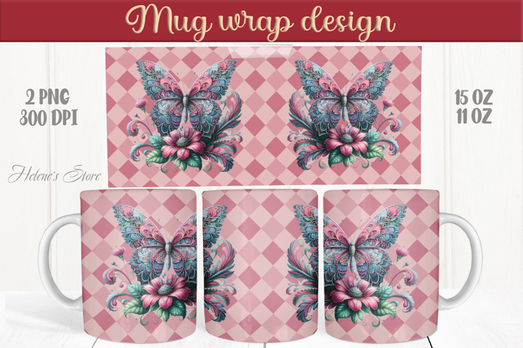 15oz Mug Template Love Sublimation Mug Wrap Sublimation Designs For Coffee Mugs 11 Oz Mug Wraps Coffee Cup Magical Butterfly On Flowers Birthday Design For Gift Floral Lover Mug Wraps Designs Checkered Plaid Background Full Wrap Beautiful Butterflies Incect On Magic Flower Whimsical Butterfly 15 Oz Mug Design Png