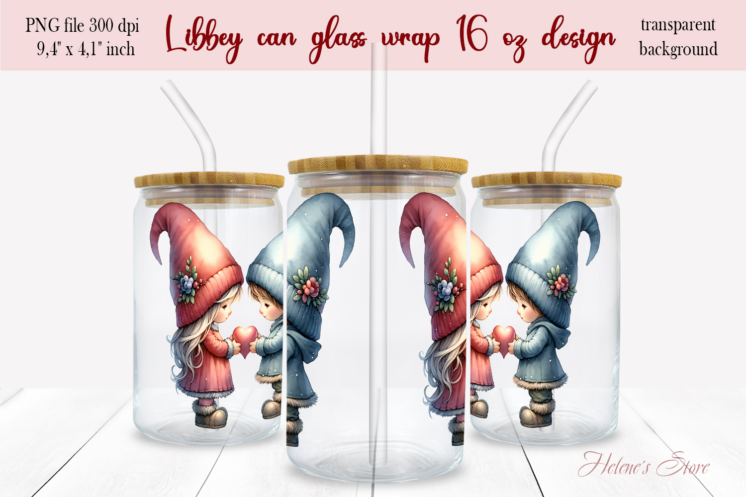 Similar Design Products to Cute Valentine gnomes Libbey Can Glass Wrap 16oz design png