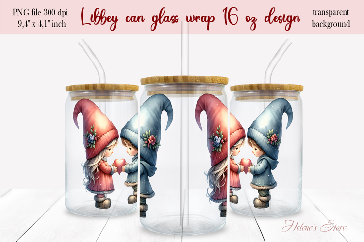 Cute Valentine gnomes Libbey Can Glass Wrap 16oz design png example image 1