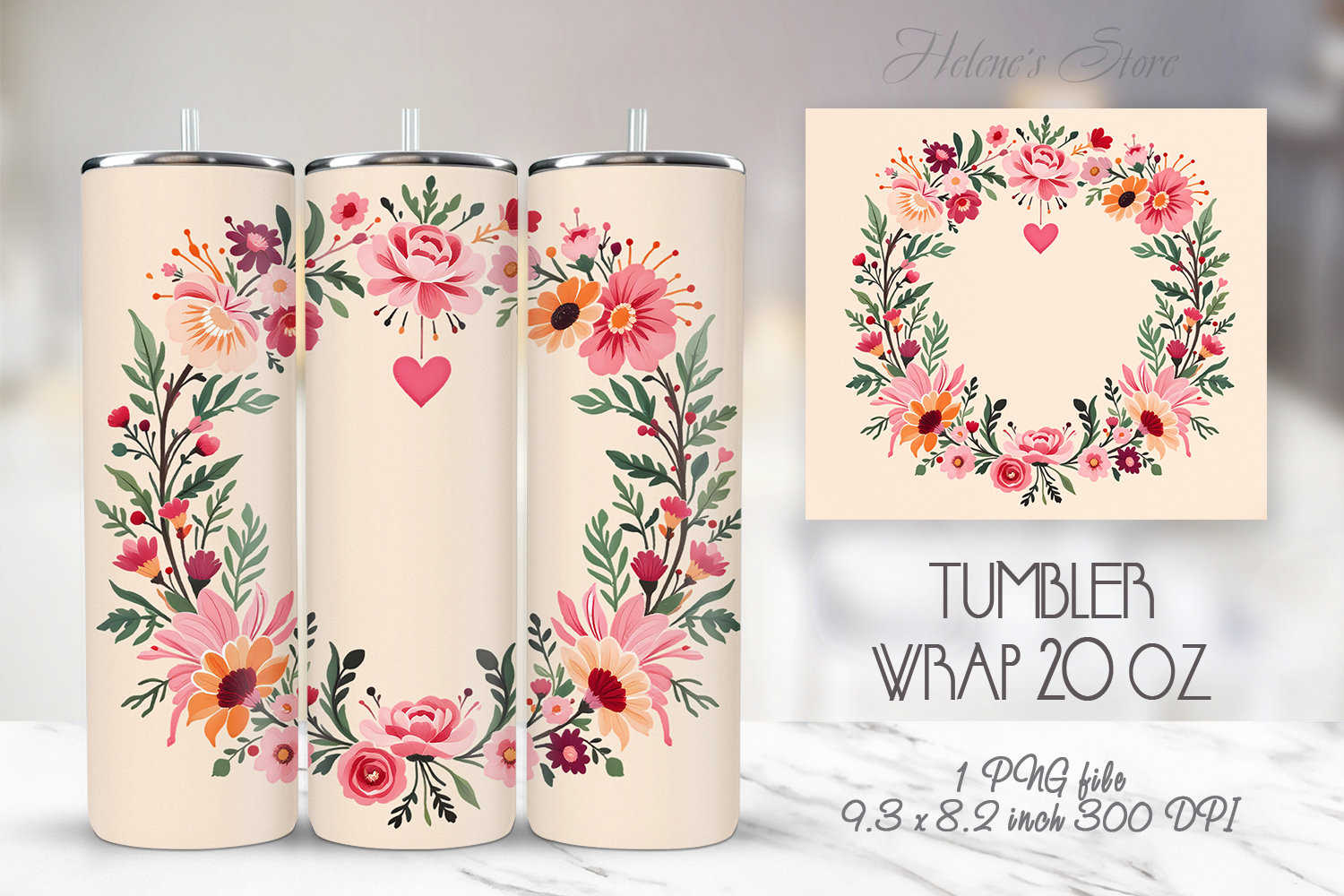 Nature Stright Tumbler 20oz Wraps Template Png Light Tumbler Sublimation Design Valentines Day Love Tumbler Wrap Template For Print Tumbler Wrap Tumbler Wraps 20oz Design Png Valentines Design Boho Embroidered Look Pink And Sage Palette Stylized Floral Wreath With Hearts And Sunbursts Pastel Spring Flowers Pattern Png Cute Girly Tumblers Design