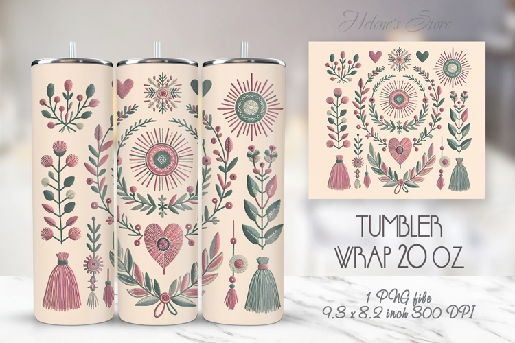 Nature Stright Tumbler 20oz Wraps Template Png Light Tumbler Sublimation Design Valentines Day Love Tumbler Wrap Template For Print Tumbler Wrap Tumbler Wraps 20oz Design Png Valentines Design Boho Embroidered Look Pink And Sage Palette Stylized Floral Wreath With Hearts And Sunbursts Pastel Spring Flowers Pattern Png Cute Girly Tumblers Design