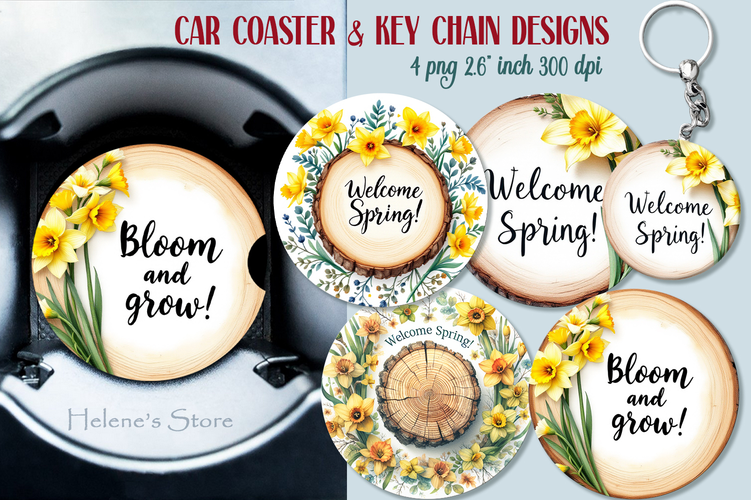 Similar Design Products to Spring round key chain designs | Blooming garden Car coaster
