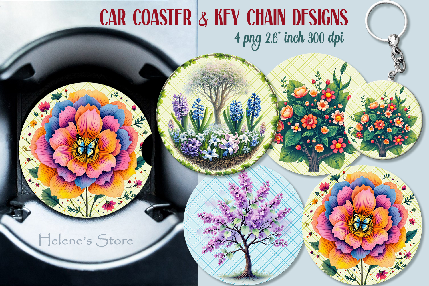 Similar Design Products to Spring round key chain designs | Blooming garden Car coaster
