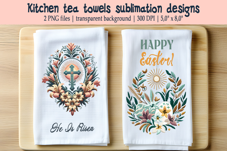 He Is Risen Kitchen Towel Sublimation Designs Happy Easter Towels Design Set Easter Floral Wreath With Eggs Easter Blessings Towel Png Boho Tea Towel Stylized Embroidery Easter Bunny Cute Rabbit Pastel Dish Towel Sublimation Easter Religious Kitchen Tea Towel Easter Cross With Flowers Lily