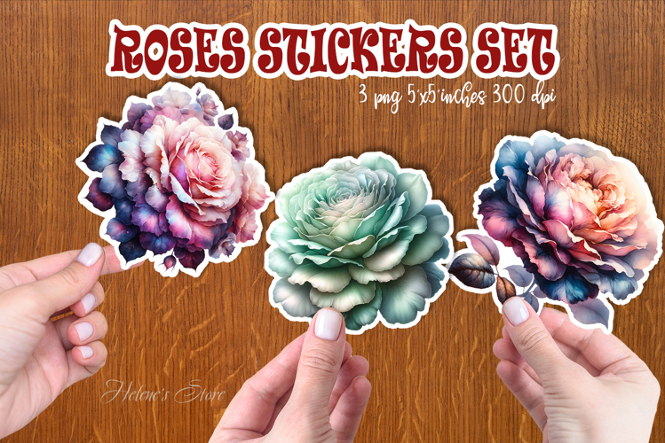 Watercolor rose flower printables stickers | Pink roses png example image 1