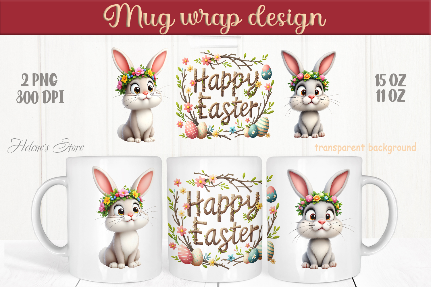 Easter mug wrap sublimation 11 oz and 15 oz.