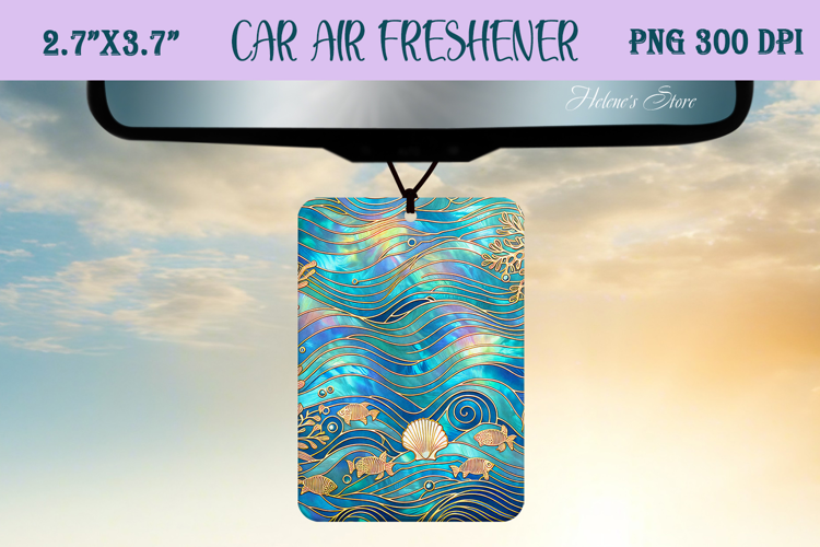 Blue & gold iridescent ocean Air Freshener Car sublimating example image 1