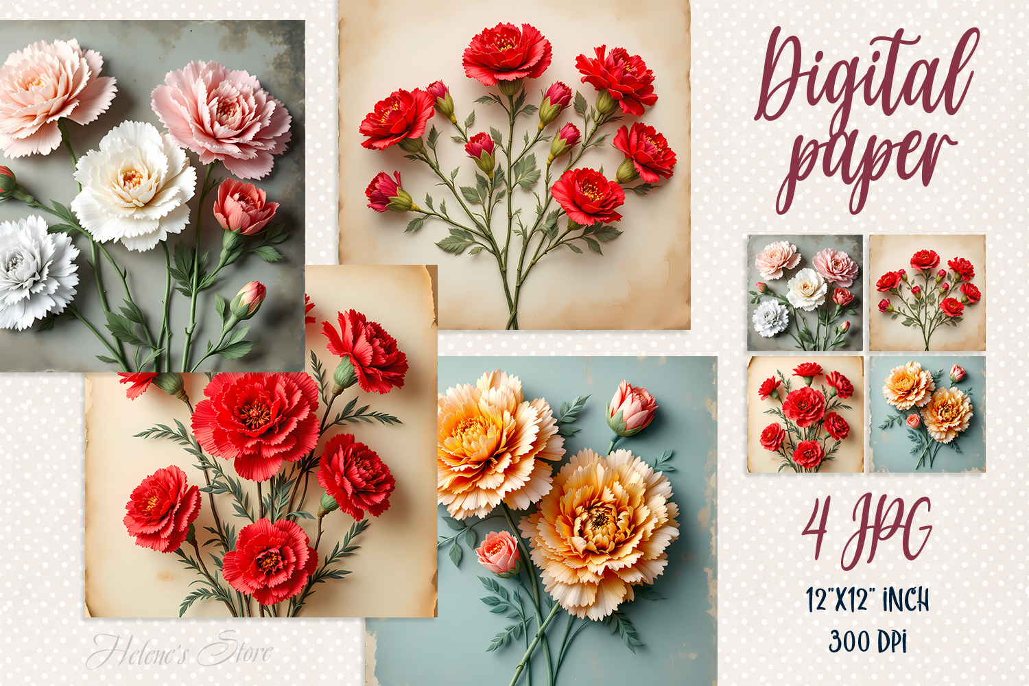 Digital Paper Sublimation Design Wallpaper Digital Paper Pack Craft Supplies Spring Scrapbook Paper Springtime Mood Retro Flowers Papers Set Digital Scrapbooking Natural Flowers Pattern Blank Template Floral Illustration Wallpaper Pack Craft Supplies Cute Pastel Designs Backdrop Vintage Scrapbook Old Backgrounds Set 3d Drawing Garden Flowers Bouquet White Red Pink Carnation Flower 3d Picture