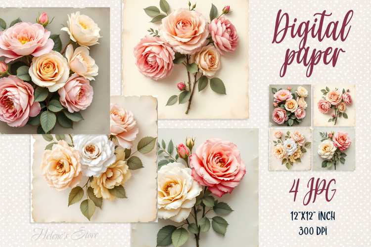 Digital Paper Sublimation Design Wallpaper Digital Paper Pack Craft Supplies Spring Scrapbook Paper Springtime Mood Retro Flowers Papers Set Digital Scrapbooking Natural Flowers Pattern Blank Template Floral Illustration Wallpaper Pack Craft Supplies Vintage Scrapbook Old Backgrounds Set 3d Drawing Garden Flowers Bouquet Cute Rose Pastel Designs Backdrop Delicate Tea Roses Pink Flower Picture Jpg